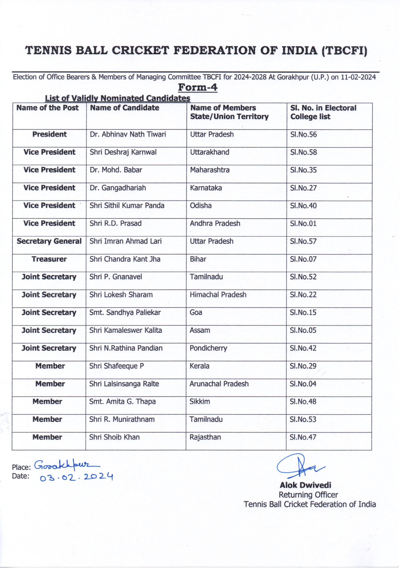 Election of TBCFI-2024-2028
