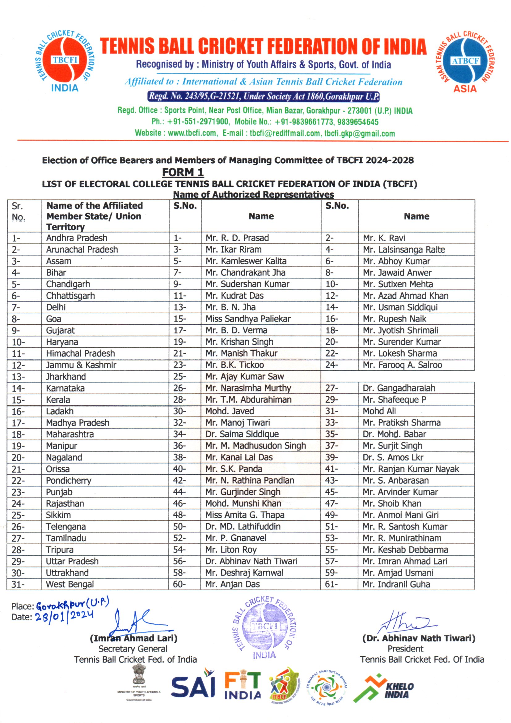 Affilated To : International & Aasian Tennis Ball Cricket Federation