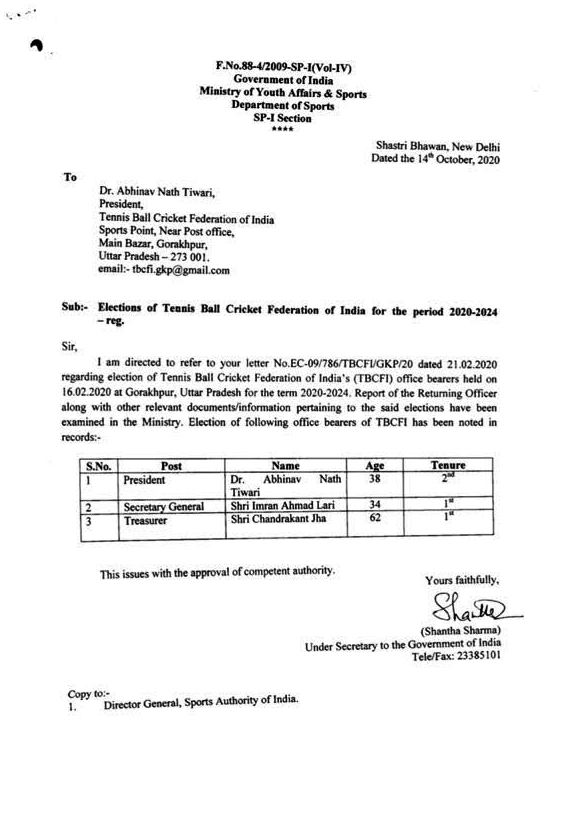 TBCFI ELECTION APPROVAL 2020-2024 BY MYAS, GOI